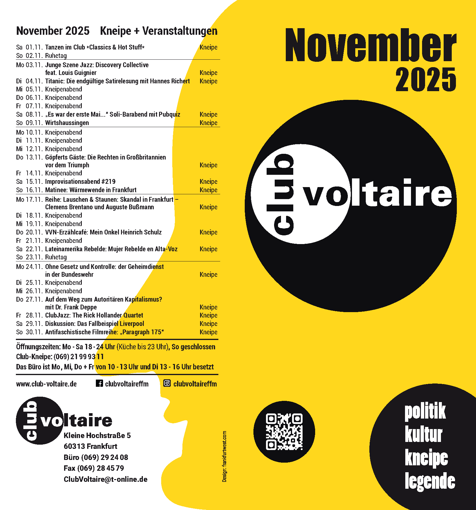 Mitten in Frankfurt der Ort für politische und kulturelle Veranstaltungen, für Gesprächs- und Streitkultur seit 1962.