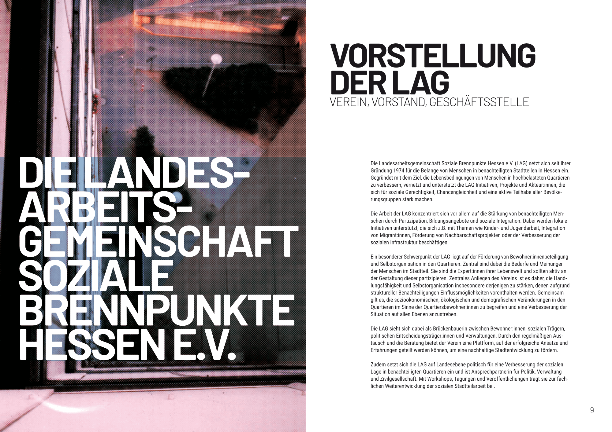 Verbesserung der Wohn- und Lebensbedingungen in benachteiligten Quartieren, die Überwindung von Armut und sozialräumlicher Ausgrenzung sowie die Stärkung von Chancengleichheit und gesellschaftlicher Teilhabe sind Ziele der Landesarbeitsgemeinschaft Soziale Brennpunkte Hessen.