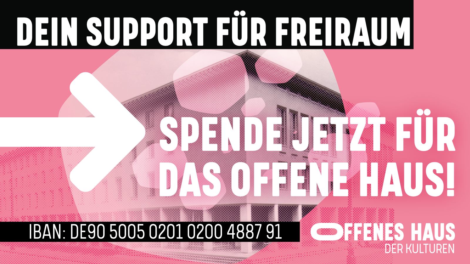 Das Offene Haus der Kulturen startet eine Kampagne für die Realisierung des soziokulturellen Zentrums im Studierendenhaus am Campus Bockenheim – Aktionslogo, Plakat, Flyer, Sharepics, T-Shirts