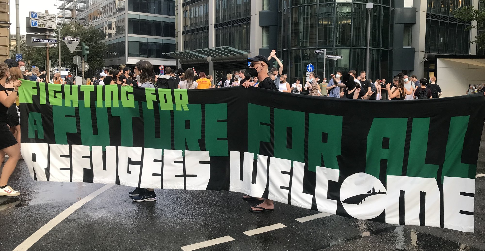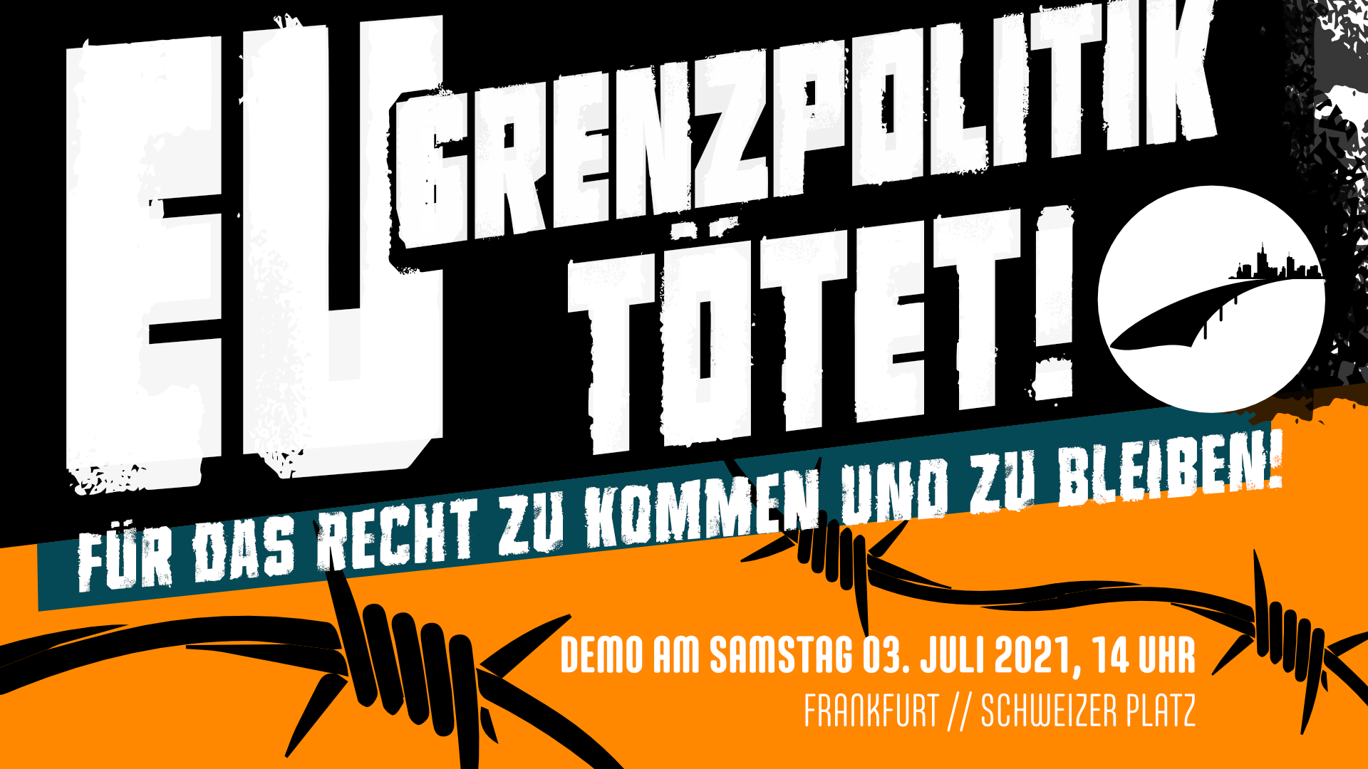 Die systematischen Menschenrechtsverletzungen an den Außengrenzen sind lange bekannt und die Tatsache, dass sich nichts verändert, ein Skandal. Zur Demonstration EU Grenzpolitik tötet! gestaltet frankfurtwest Banner, Flyer und Sharepics für die Seebrücke.