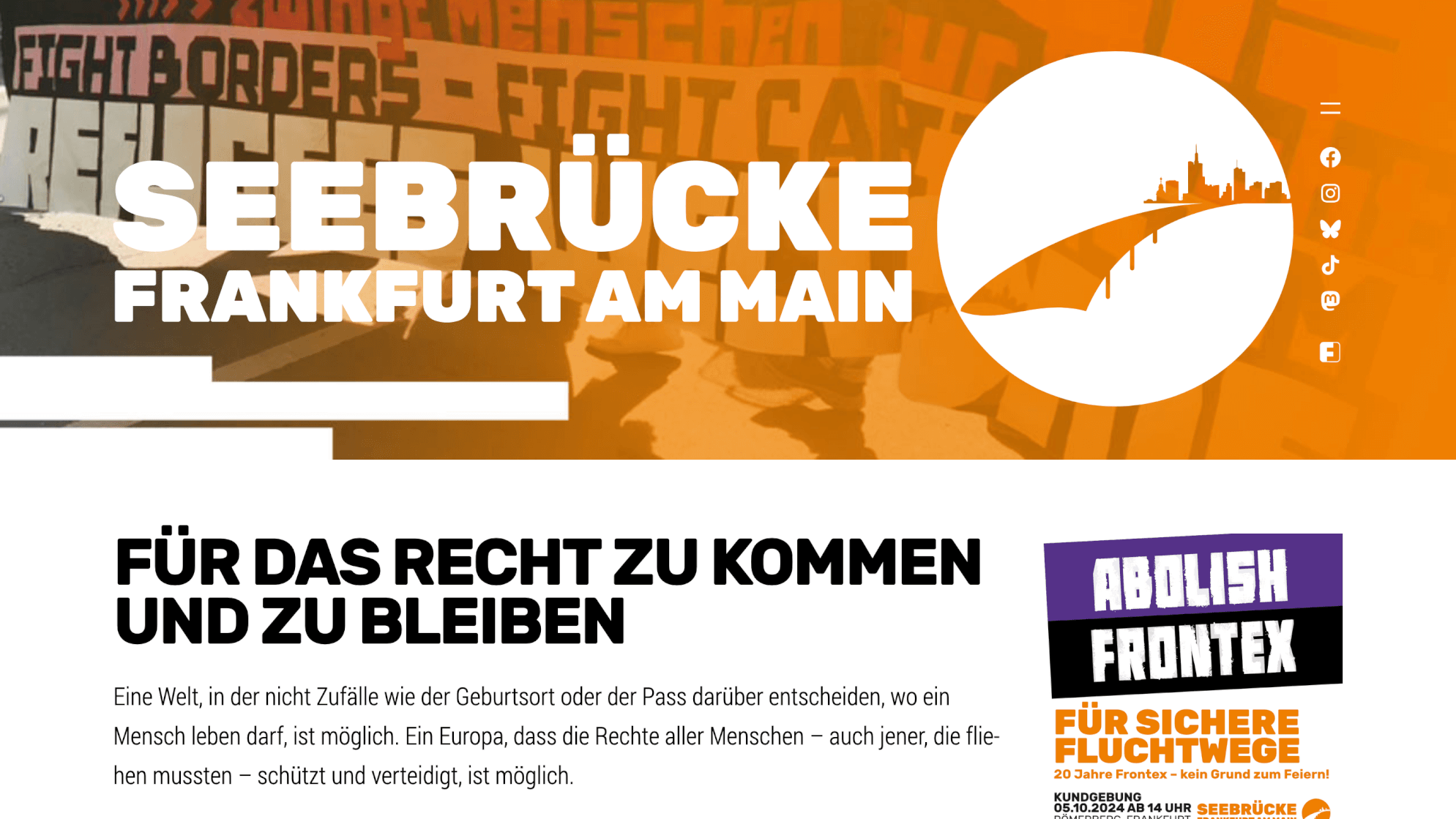 Die SEEBRÜCKE FRANKFURT kämpft für sichere Fluchtwege, Entkriminalisierung von Seenotrettung und für ein solidarisches Frankfurt als SICHEREN HAFEN für ALLE.
